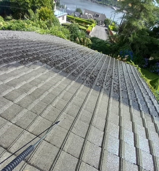 The roof cleaning in Mallow, Midleton, Fermoy, and nationwide carried out by Dream Team Roof Cleaning Services includes: gutter cleaning, soffit cleaning, roof algae removal, roof lichen removal, and all roof cleaning services.