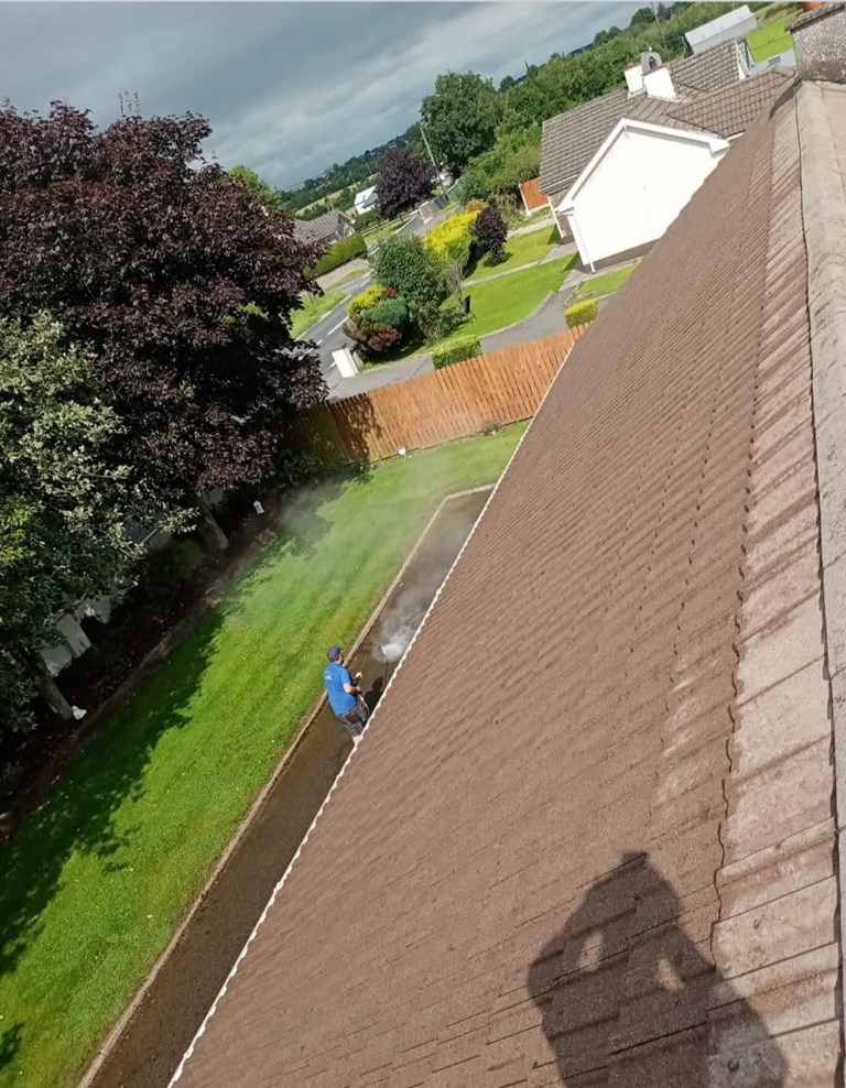 Equipped with adjustable pressure washers, Dream Team Roof Cleaning Services use the most effective pressure to remove specific types of roof stains, non-abrasive roof cleaning detergents are used to remove moss and algae from roofs, advice on how often individual roofs should be cleaned can be provided, and roof cleaning in Mallow, Midleton, and Fermoy can be arranged at short notice.