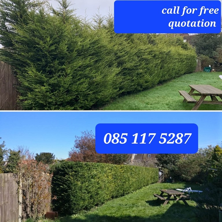 Wide hedges can be trimmed quickly and efficiently, high hedges can be cut right back, hedges can be cut into shapes to suit individual requirements, all hedge cuttings can be shredded and removed from site, tree pruning and tree topping services can be undertaken, hedge trimming and tree trimming services are available seven days a week, and hedge trimming in Clonmel and Carrick-on-Suir can be arranged at short notice.