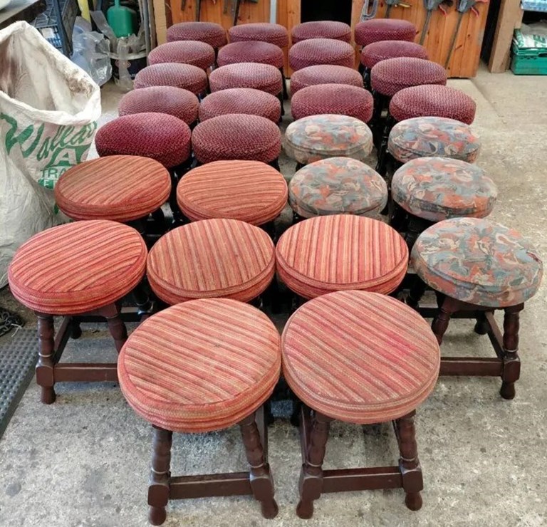 Selecting used bar furniture from online auction catalogues, Tom meticulously inspects all furniture for imperfections prior to buying, and South East Bar Furniture buys used pub furniture all year round.