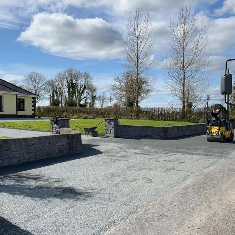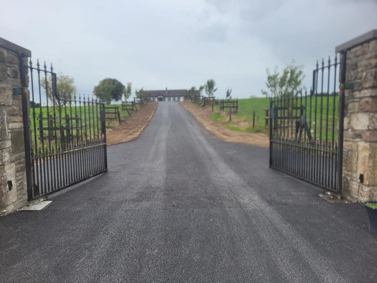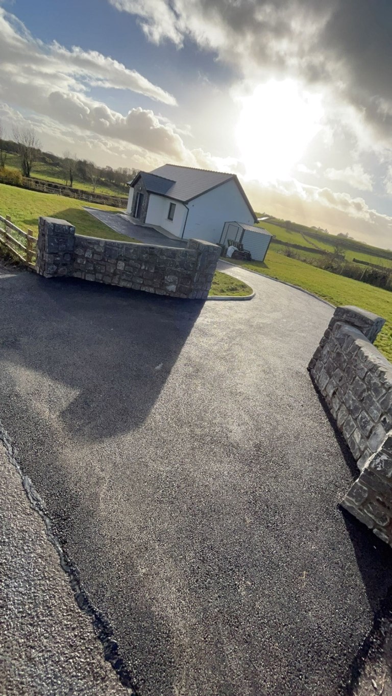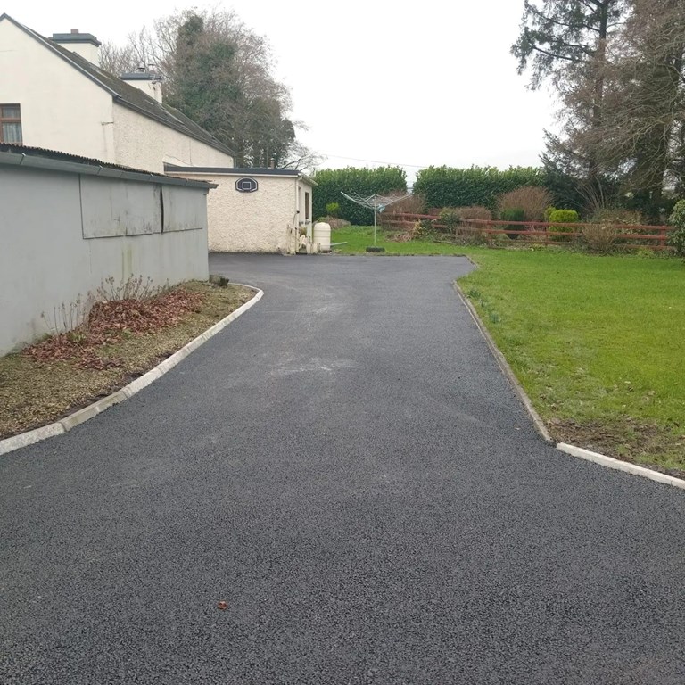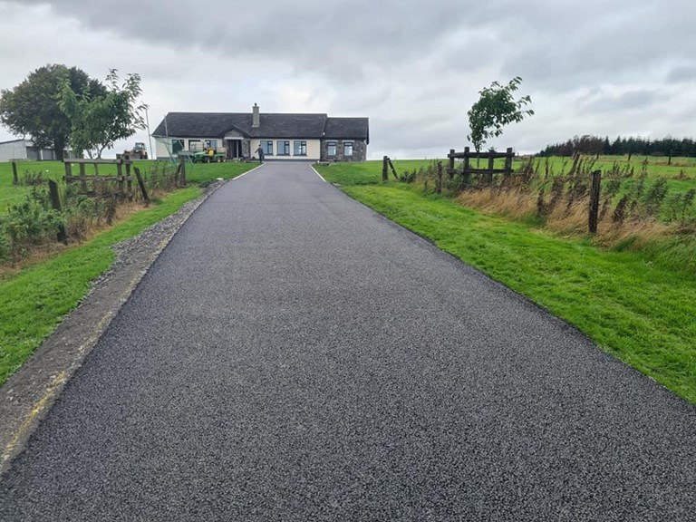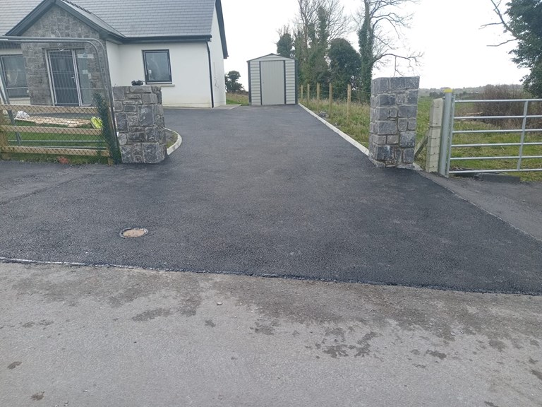 The driveway tarmacking in Castlerea, Ballyhaunis, Ballaghaderreen, and Roscommon carried out by Harpur Bros Tarmacadam includes: tarmacking lanes, tarmacking driveways, tarmacking house curtilages, tarmacking yards, and all residential tarmacking projects.